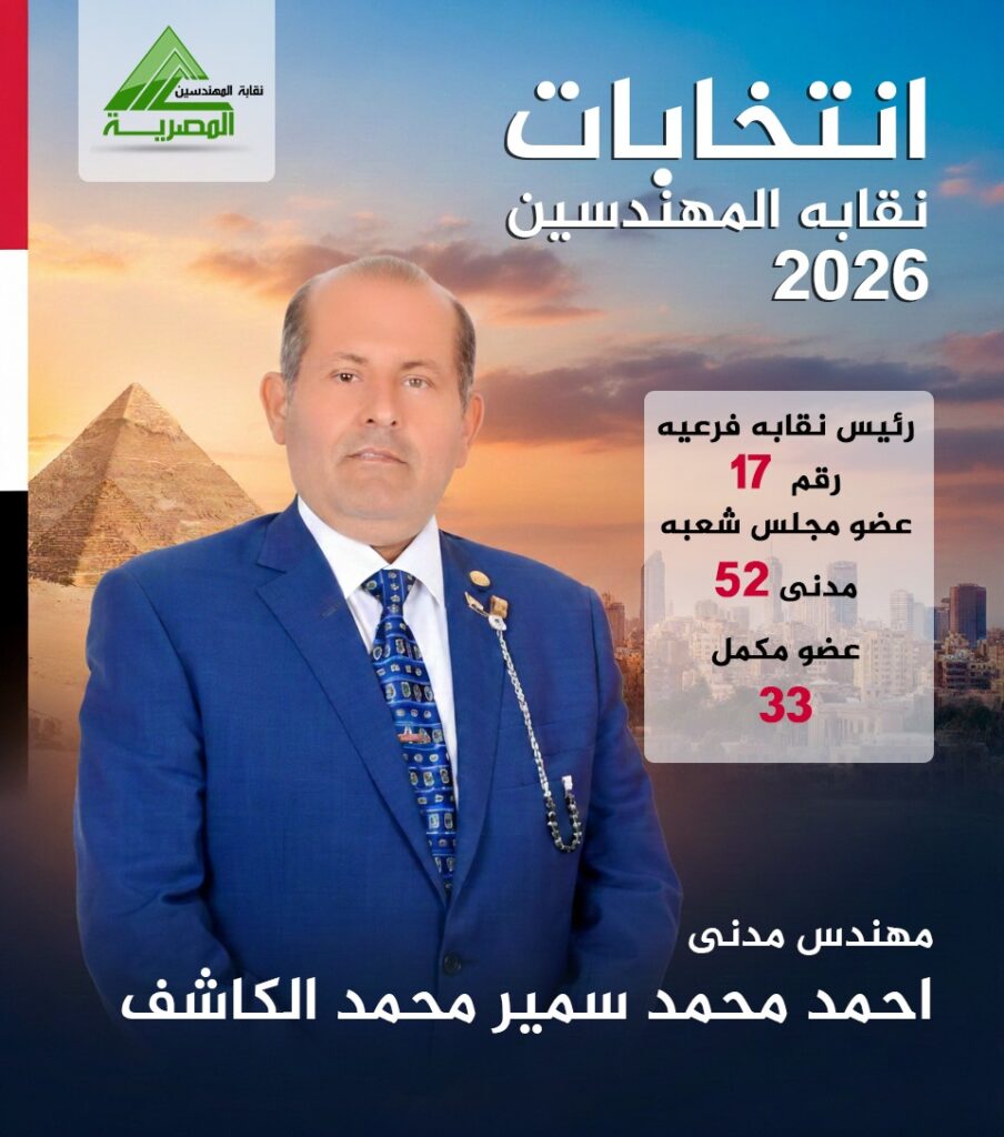 “بقلم/ هيئة التحريرفي لحظة فارقة من تاريخ العمل النقابي، ومع تطلع المهندسين لعهد جديد يعيد للمهنة قدسيتها وللمهندس كرامته، يعلن المهندس أحمد الكاشف خوض سباق انتخابات نقابة المهندسين 2026، مستنداً إلى رؤية إصلاحية شاملة وتعهدات قاطعة بالتغيير.كلمة المرشح: عهدٌ ووعد”بسم الله والصلاة والسلام على رسول الله..لقد قررت خوض انتخابات نقابة المهندسين لأكون صوتاً لكل مهندس حر، لكل زميل كافح ليصبح صرحاً في هذا المبنى العريق. إن هدفي هو تحقيق المصالح العامة، وتحويل أحلامنا التي لم تتحقق سابقاً إلى واقع ملموس. من أجل جيل جديد يجتهد ليكون له مكانه، وعمل، وبصمة واضحة في المعمار وكافة التخصصات.أدعوكم للتعاون معي لنكون يداً واحدة للتغيير، ولنجعل نقابتنا حلم جميع النقابات. التغيير من أجل الكبير والصغير، من أجل الحفاظ على هيبة المهندس واستعادة حقه في جميع مؤسسات الدولة. نريد مشاريع تشغل الجميع وتمنح فرصة للإبداع التصميمي والإنشائي؛ فهذا واجب النقابة أن تعيد هيبة المهندس أمام الجميع، وليعلم الكل أن المهندس هو الأساس قبل المال. أيدينا في أيدِ بعض.. نغير ونحقق الأهداف على أرض الواقع.”المحاور الاستراتيجية للبرنامج الانتخابي1. معركة الوعي وجودة التعليم (المعاهد الخاصة)يضع المهندس أحمد الكاشف ملف التعليم الهندسي كأولوية قصوى، حيث تشمل خطته:جودة التعليم أولاً: فرض رقابة صارمة على المناهج والمعامل في المعاهد الخاصة لضمان تخريج مهندس قادر على المنافسة.إلغاء اعتماد المعاهد غير المؤهلة: اتخاذ قرارات حاسمة بإلغاء اعتماد أي معهد لا يستوفي المعايير الهندسية والتعليمية، فلا تهاون في سمعة المهنة.ربط النقابة بسوق العمل: ضمان أن يكون التدريب العملي شرطاً أساسياً قبل القيد، لغلق الفجوة بين الدراسة الأكاديمية وواقع المواقع الإنشائية.2. هيبة المهندس وحقوقه الإداريةالمهندس أولاً: تفعيل القوانين التي تضمن للمهندس القيادة في كافة المشاريع، وترسيخ قاعدة أن “المهندس هو المحرك الأساسي للمشروع”.خلق فرص عمل: تبني برامج تشغيل وطنية واستحداث مشروعات نقابية تستوعب طاقات الشباب وتفتح آفاقاً للإبداع الإنشائي والتصميمي.معايير الكفاءة والقيادةإن ترشح المهندس أحمد الكاشف يأتي انطلاقاً من معايير مهنية دقيقة:القدرة على المواجهة: شجاعة في اتخاذ قرارات تنقية الجداول وإصلاح منظومة التعليم.العمل التشاركي: الإيمان بأن النقابة ملك لجميع أعضائها، ولا تنجح إلا بروح “اليد الواحدة”.الاستقامة المهنية: الحفاظ على أصول النقابة ومواردها وتوجيهها لخدمة المهندس أولاً وأخيراً.تحت إشراف:رئيس مجلس الإدارة: علي صقر مدير التحرير: م/ محمود توفيق